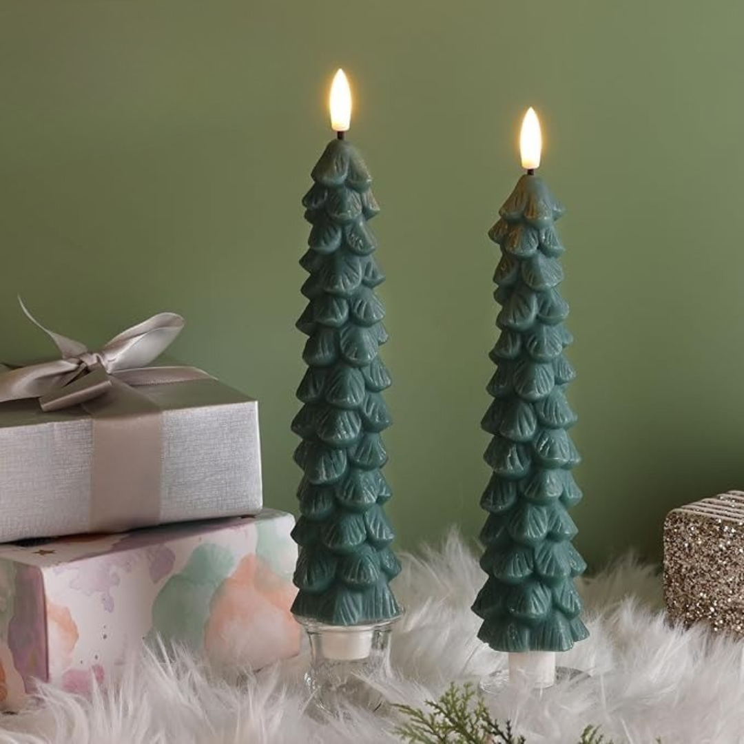 Infuse your home with holiday enchantment using our Flameless Christmas Tree Candle - crafted to mimic a lush evergreen with a soft, flickering LED glow that radiates warmth and whimsy.